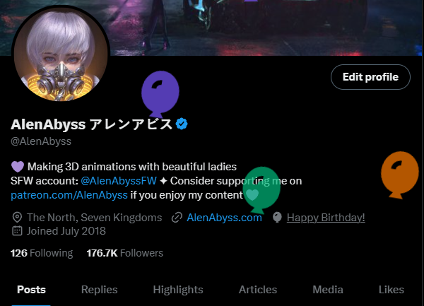 AlenAbyss アレンアビス’s pics and videos 327 tweets 182.7K followers 1.8K likes55 PICS65 VIDEO120 MEDIA 72 Next Page